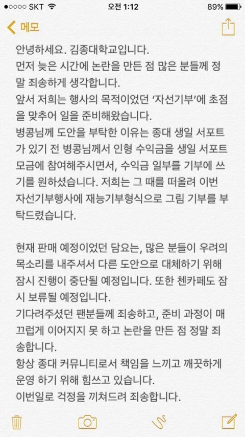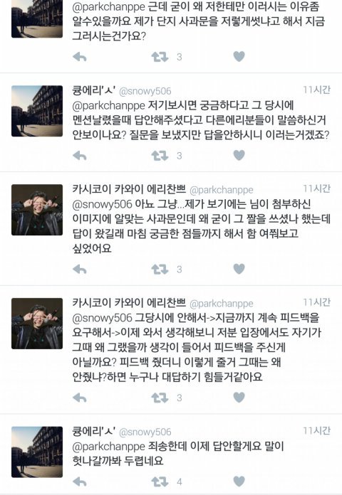 사과는 팬아터한테 들으면 될 걸 어디까지 사과할 말?