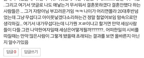 또 대댓글 쓴 걸로 욕 엄청 하시는데 내 말이 저출산국가인데 애를 낳아라는 게 아님. (아니 애당초 내 글은 애낳아라!가 아님. )이해력이 떨어지는 사람이 너무 많아서 놀라움. 우리나라 저출산국가인 이유가 뭐임?