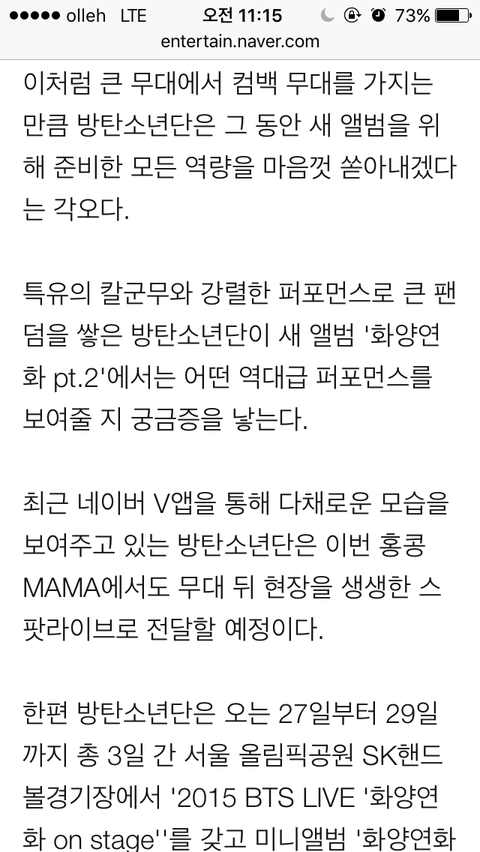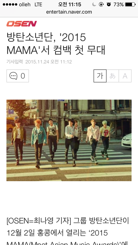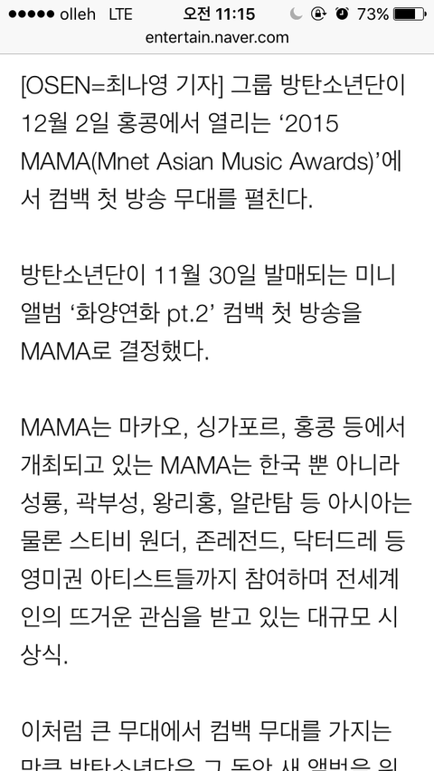 네이버 방탄 컴백기사~마마로 컴백무대한대