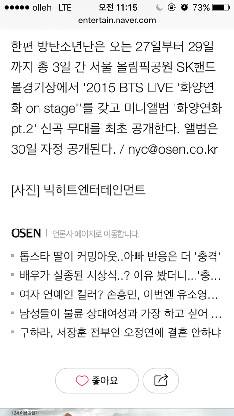 기사 떳어!! 부담감이 클테지만 언제나 응원하자!! 화양연화를 위해서~~~