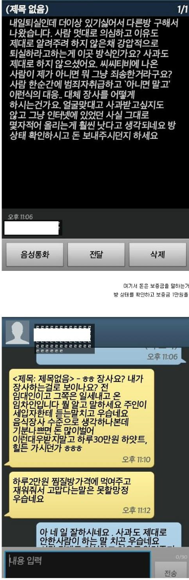 2. 고시원 사장이 전화가 와서 벽지값을 변상하라고 함(5만원)