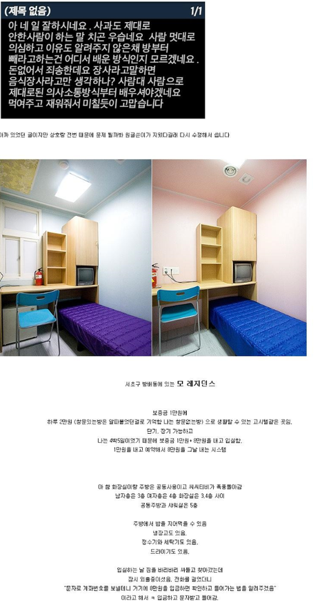 과거 방배미니레지던X 우유사건,곰팡이사건등 큰사건이 있었고 사과문이 올라왔으나