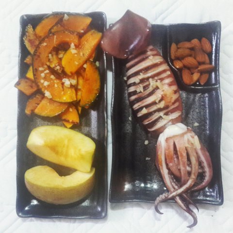 이건 그냥 삶은 오징어 후라이팬에 구워서 위에 치즈 가루 뿌린거에요