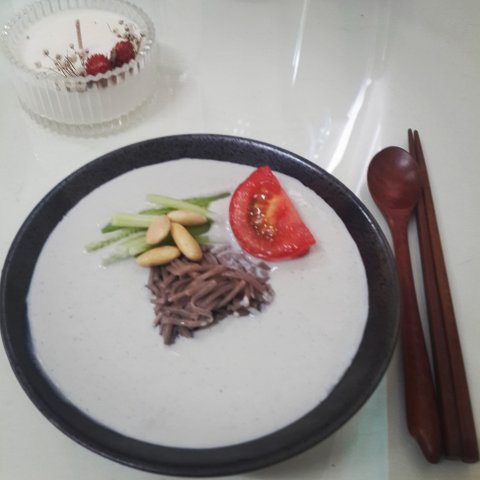 이건 흰색에 까만 접시같아 보이지만 오목한 까만접시에 담은 콩국수랍니다