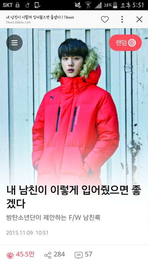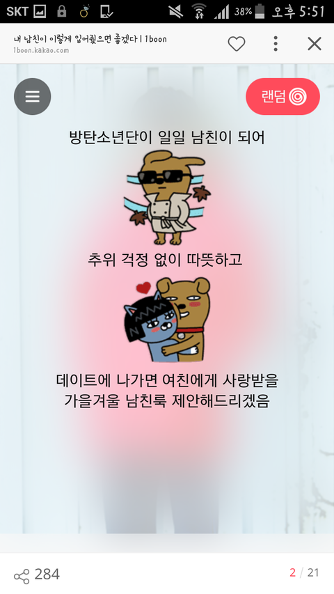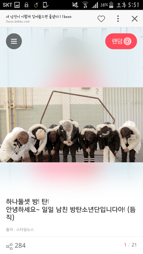여튼! 카톡하다 남친뭐라머라 하면서 방탄나와서