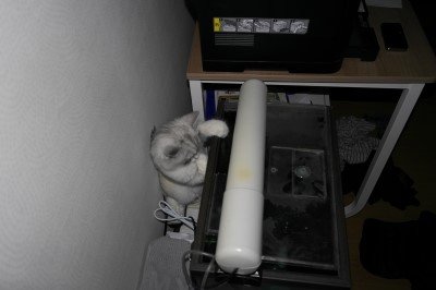 작은 수조만 건드립니다. 벌써 3번째. 왜 잡지도 못하는 새우를 잡아보겠다고 매번 발을 적시는지...
