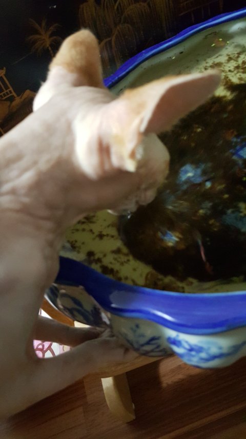 여과기 설치하느라 수조 뚜껑에 공간을 만들었는데 그 사이로 발을 쑥 넣어서 휘휘~하고
