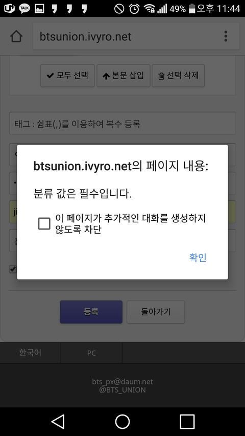 아이디 모집하려고 하는데 저런게뜬다..그리고 홈페이지 쓰라는거 그거 뭔소리야 뭐써야되??ㅠㅠㅠ도와줘