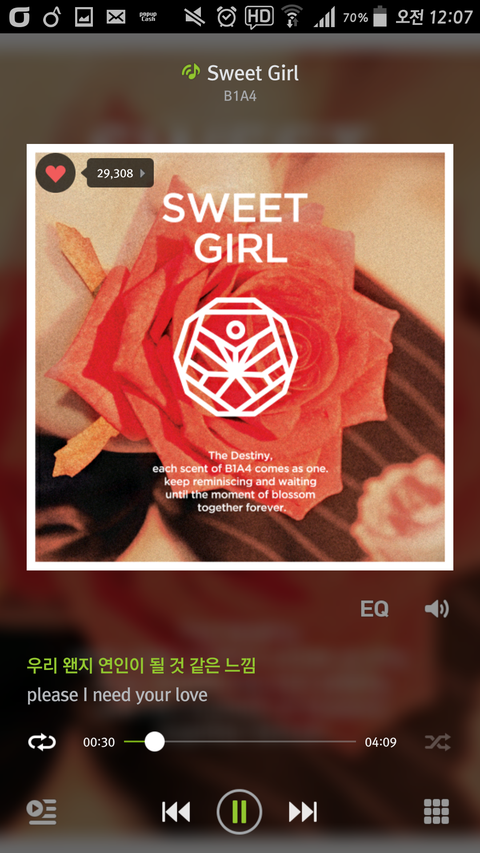 나는 스윗걸 또 담으려고 하니까 이미 담은 곡이라고