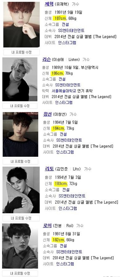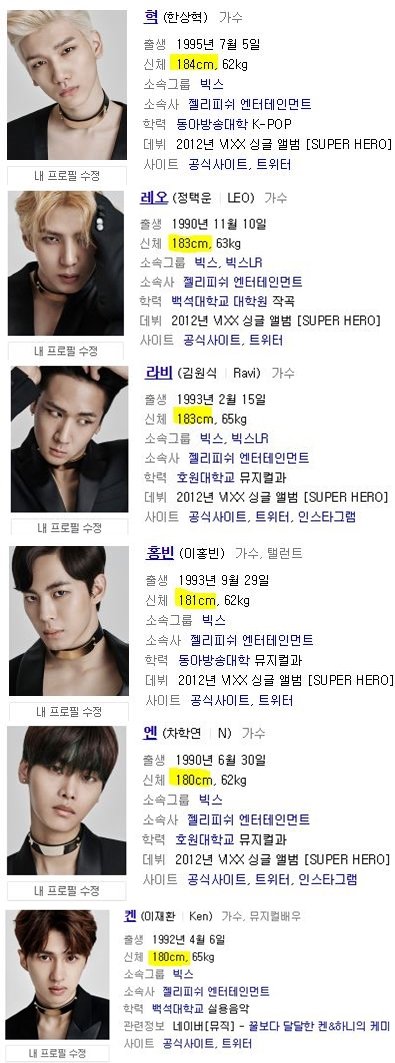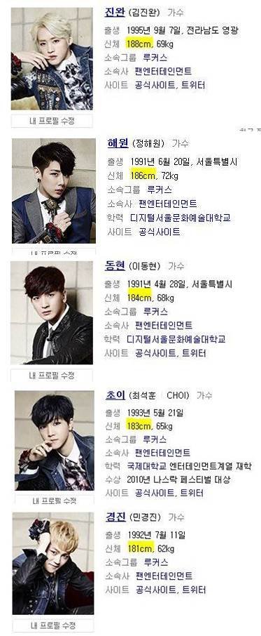 모든 멤버의 키가 180 넘는 그룹 위주로 찾아봄