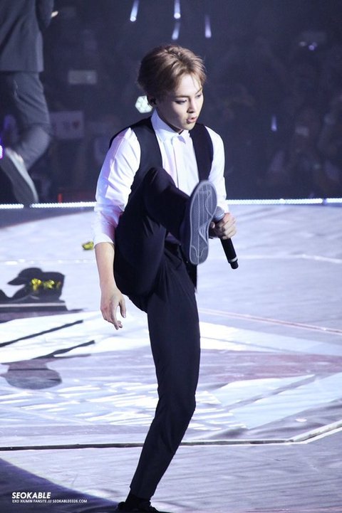 시우민 다리 올라가는 거 봄? ㅋㅋ