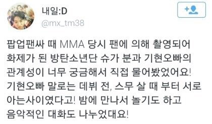 홉이랑 형1원님도 친하다더라 같은 고향에 같은 댄스학원 출신이라