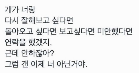 마주보고 헤어지자 들었어도 충격은 비슷할거예요 이별은 원래 양쪽의 동의가 아닌 한쪽의 의사만으로도 이루어지는거니… 아무쪼록 맘 정리..
