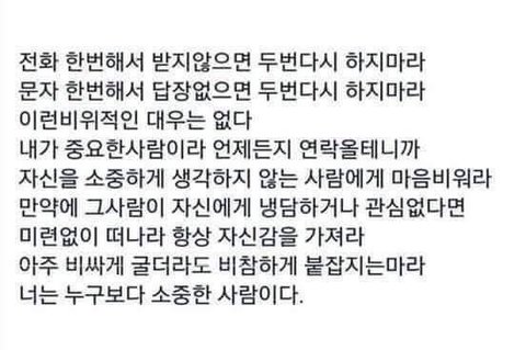 완전 공감합니다!! 정말 그런사람 옆에 두고있어봤지만 조금만 빈정상하거나 다투면 무조건 헤어지자고 하거나 연락끊습니다 제가 다 받아..