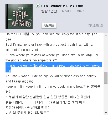 아무생각없이 노래듣다가 네버랜드 나오는순간 당황해서 급하게 초록창에서 가사가져옴 설마 이때부터 준비하진 않았겠지 개씹소름;