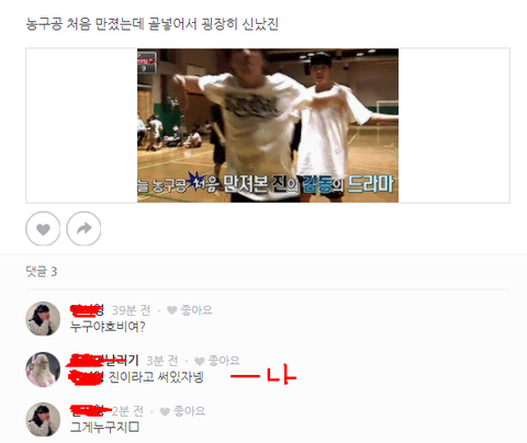 석진이만 빨길래 저 진이라고 써있잖아 했는데