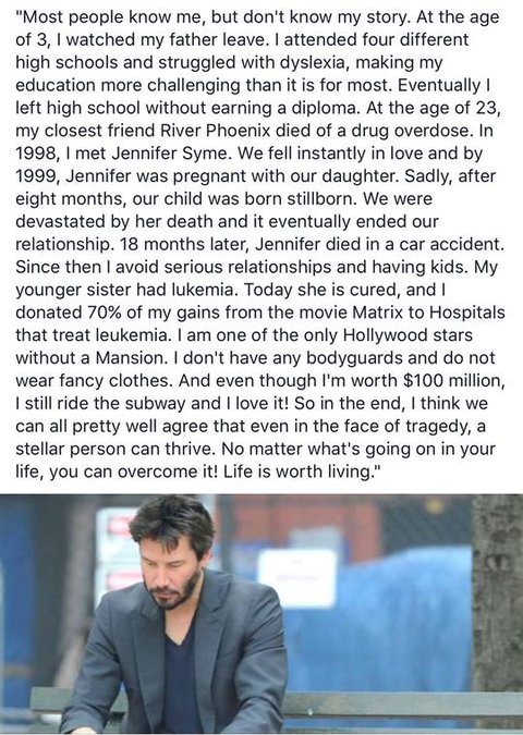키아누 리브스가 페이스북에 남긴글