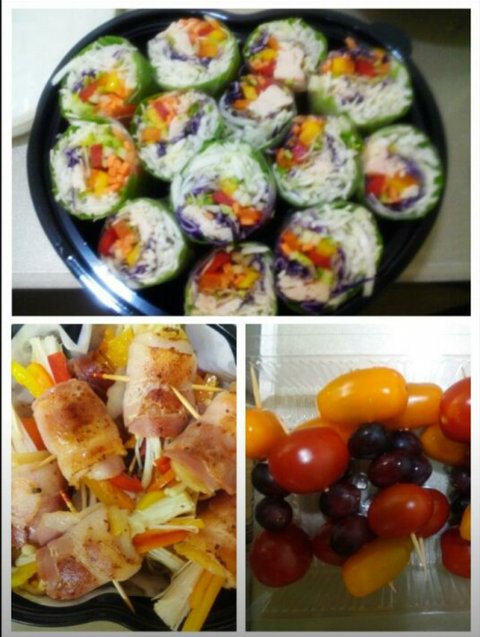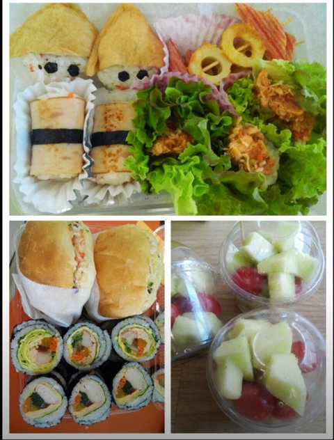 유부초밥,베이컨말이밥.어묵꼬지.상추쌈밥.