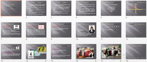 심지어 브랜드 조사는 브랜드 검색해서 나오는 그 홈페이지에서 나온 상태 그대로 갖다가 붙여놓고 처음에는 에이.. 설마 이걸로 발표하려고 했던 건 아니겠지? 했는데 저기 럭키슈에뜨 부분에 사진 3개는 애니메이션 효과도 줬더라구요^^ 저걸로 진짜 발표하려고 했었나봐요...ㅠㅠ