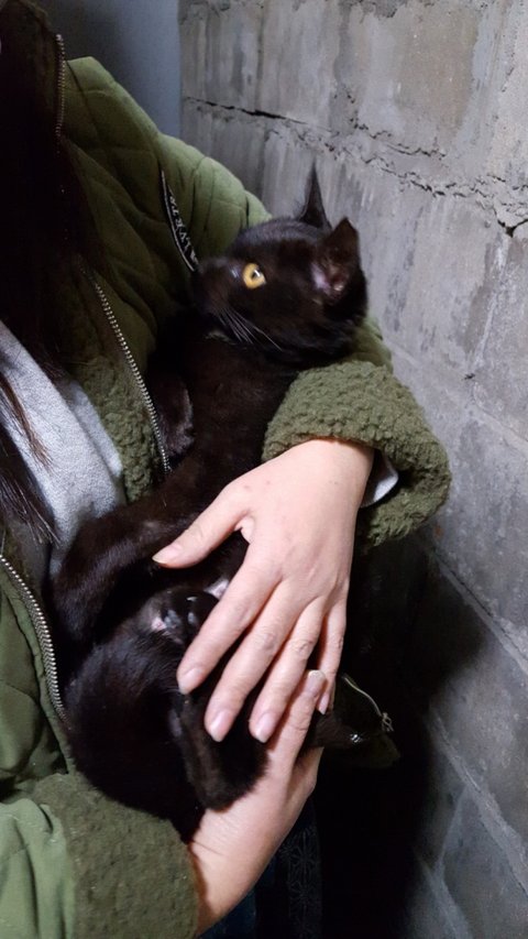-올블랙인데 턱밑에 작은 흰반점 털이 있음