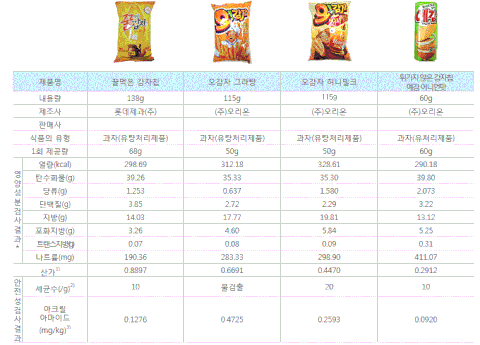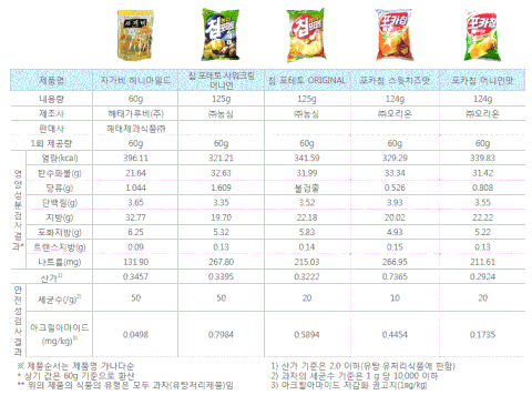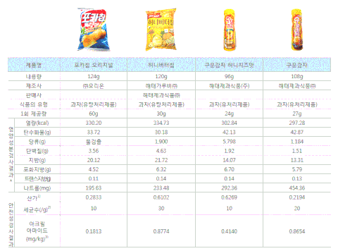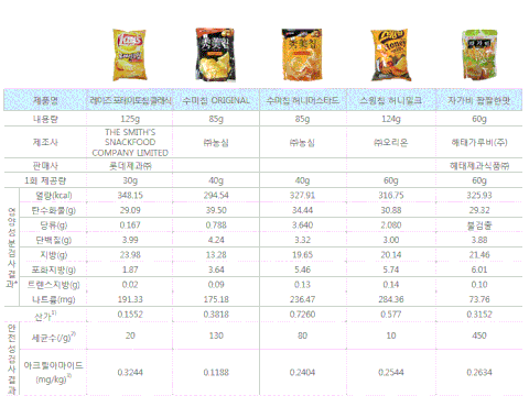 시중 판매중인 감자칩 칼로리랑 영양정보입니다