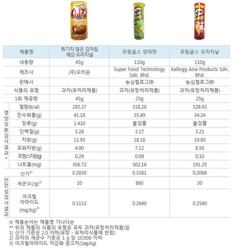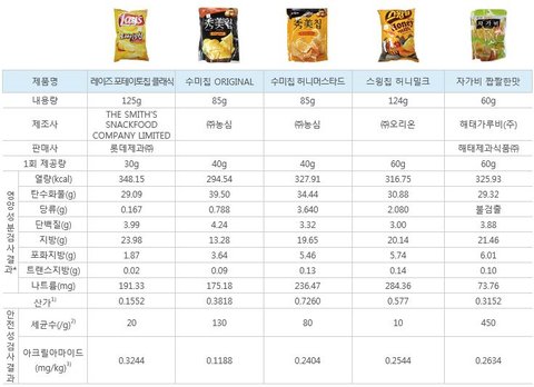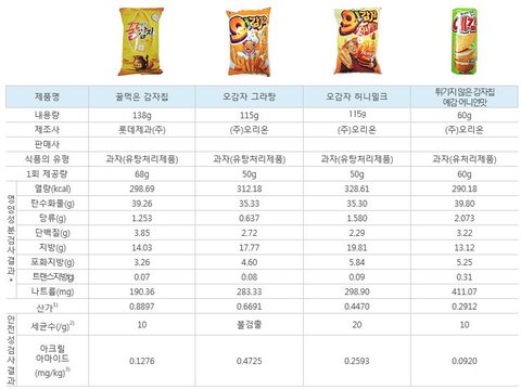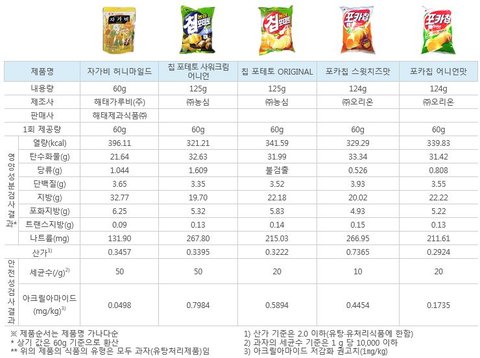 감자스낵 21종을 비교한 결과를 들고왔습니다.