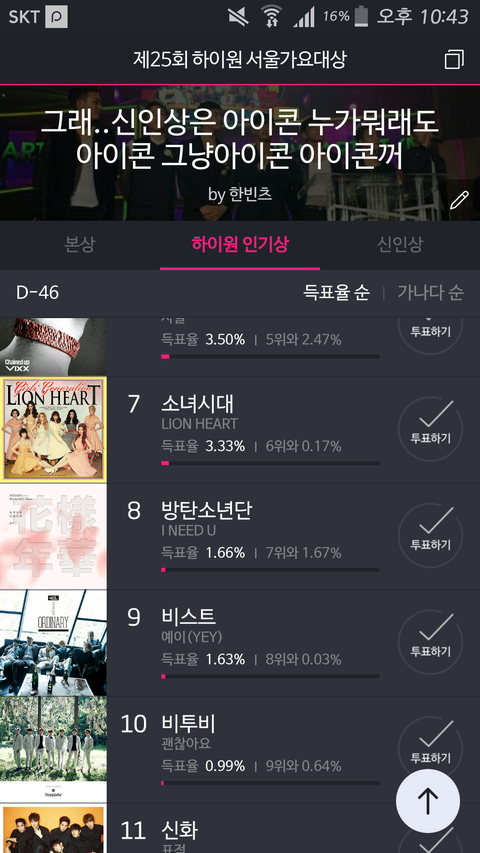9위에서 8위로올라갔어~~ 이대로매일투표하자!!