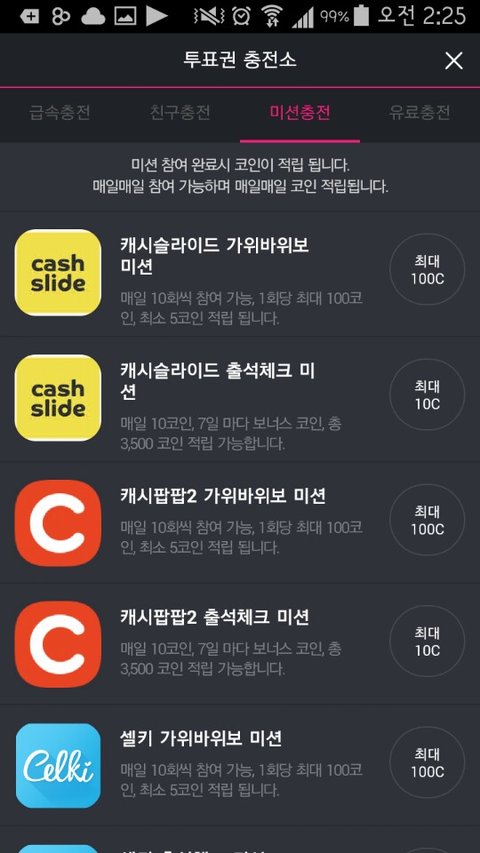 하루에 미션충전을 가능한 횟수를 다하시기만 해도 충분히 본상은 10표 다 투표할 수 있어요