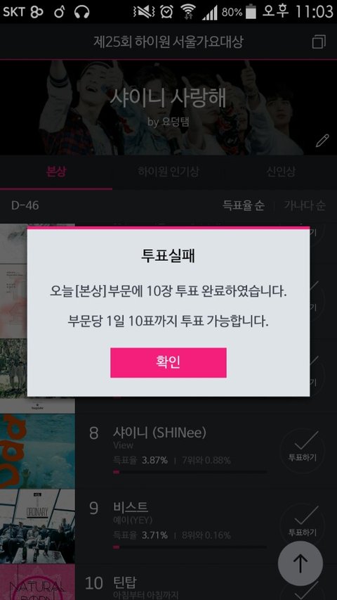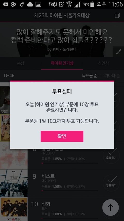 부문마다 하루에 10회까지 투표가 가능한데요.