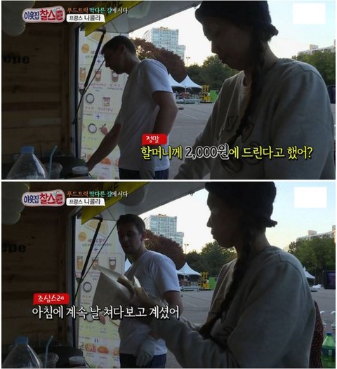하나에 3500원짜린거 알면서 3000원 가져와서 2개 달라함