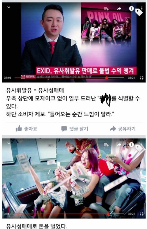 영화 주유소 습격사건에서 모티브 가져온거야. EXID는 기성세대인 호랑이를 납치하고 주유소 영업을 하는 거고. 비판을 하려면 뮤비를 좀 제로 보고 와서 해라. 이 세상 약자, 여성을 옹호하는 뮤비라고.