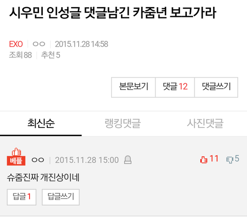 카줌년거리면서 글쓰고 베플은 슈줌거리고