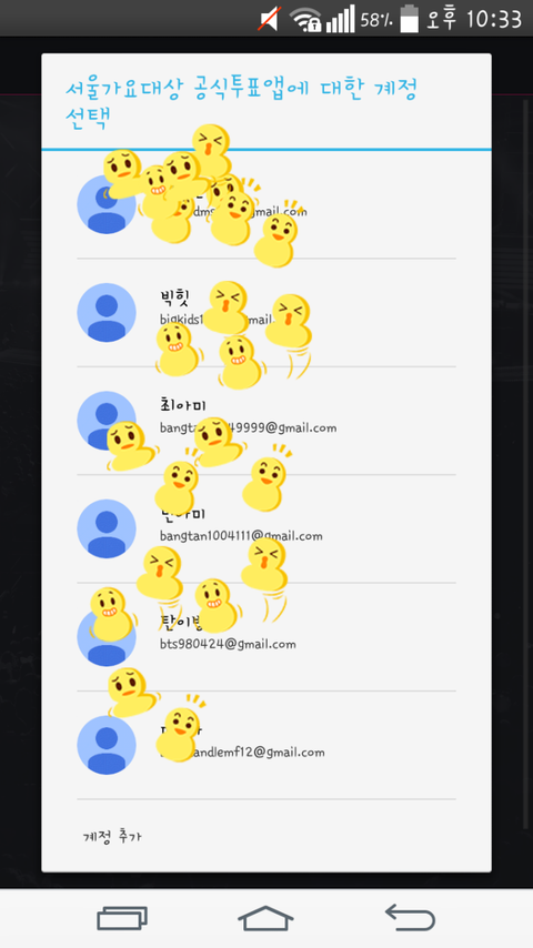 그리고 이렇게 부계정 많이만들어놔서 열두시에 한계정으로 투표다하면바로로그아웃해서다른계정으로할수있도록 투표하자