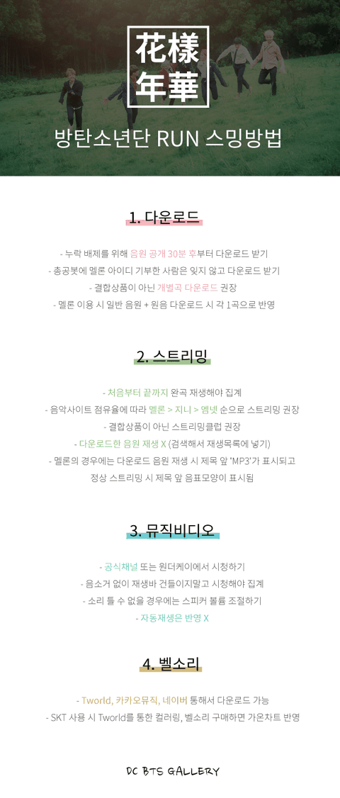 1. 스밍은 파트투 전곡+아니쥬로 해서 전체반복2. 뮤비볼때(유툽에서) 아이디는 꼭 로그아웃상태 ->공식채널or원더케이에서 시청(음소거x,재생바건들x) ->다본뒤 쿠키삭제 ->인터넷창 껐다가 켜서 다시보기