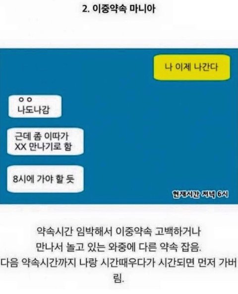 이중약속 조카싫어 근데 저게왜 개매너인지 모르는 사람들 많더라
