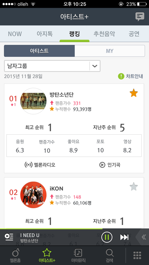 막 이것저것하다가 아티스트 랭킹에서 남자그룹갔는데