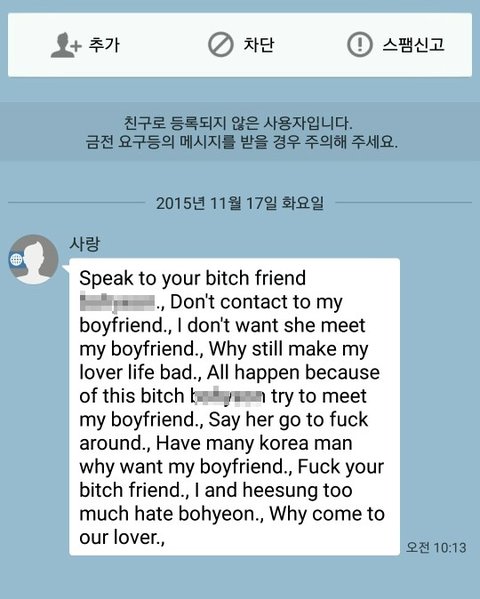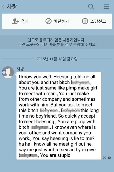 그 뒤로는 저한테까지도 연락와서 계속 비방하는 메세지를 보내고..
