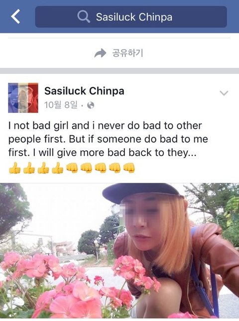 문제는 그 욕을 보내는 계정이 태국여자 본인것이 아니라고 말하고 있고..