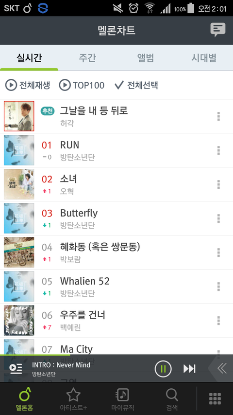 화양연화 파트투 인트로~아웃트로 먼저 현재재생목록에 넣고! 남은시간은 런이랑 아니쥬로 꽉꽉채워넣어줘 한 네댓개정도 넣으면 1시간 될거야!! 1시간마다 집계니까 재생해봐서 한시간 채워주면돼 스밍할때 반복표시 꼭 누르고 제목앞에 초록색음표가 있다면 제대로 하고 있는거야! dcf로 되어있으면 새로 재생목록에 담으면 돼