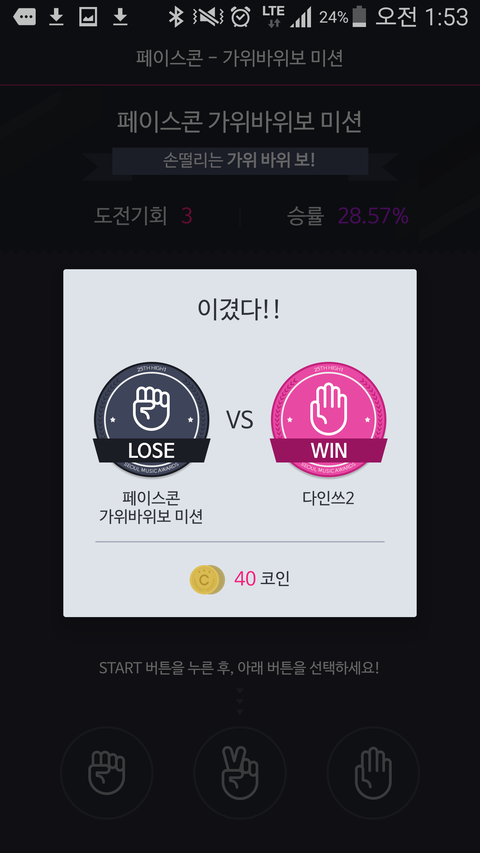 요약하자면 자기가 낸 가위바위보를 이기는 다음 가위바위보를 내ㅇ!