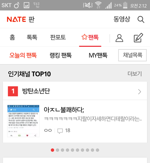 팬톡 1위 진짜네 곧 다시 2위로 가겠지...? ㅠㅠ