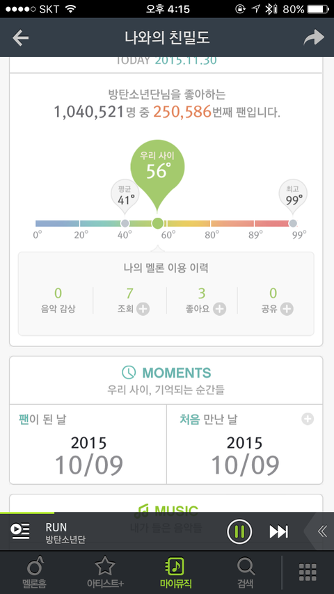 왜 들은노래가 0이야