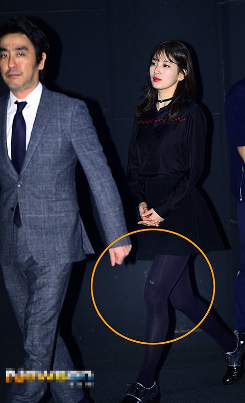 바로 구멍난 스타킹을 신고온것