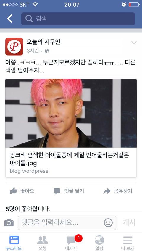 ㅅㅂ 사진을 저따위꺼로 올리니까 그러지 조카 화나네 우리 낮누 핑크핑크 잘어울리는데 ; 어우 멋을모르네멋응