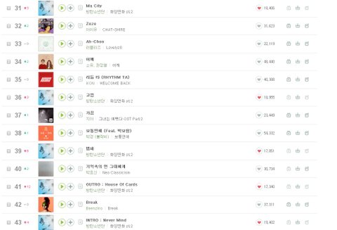 수록곡도 점점 올라간다!!!!