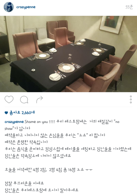 예전에 어떤 고깃집 앞을 지나가는데 연말이라 누가 단체예약을 했는지 아주머니께서 수십명분의 반찬과 테이블 세팅을 하고 계셨음. 분명 즐거운 표정이셨음. 그리고 얼마 있다가 일보고 다시 지나가는 길에 보니 수십명 세팅 된 거 다시 접고 계심. 그거보고 내가 다 열이 받던데. 우리나라 사람들은 약속이란 걸 참 가볍게 여기는 것 같음.