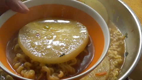 그리고 무는 되도록 푹 삶아서 먹으면 라면국물 맛이 베여서~