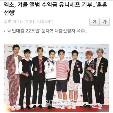 공지) 엑소 겨울 앨범 수익금 유니세프 기부