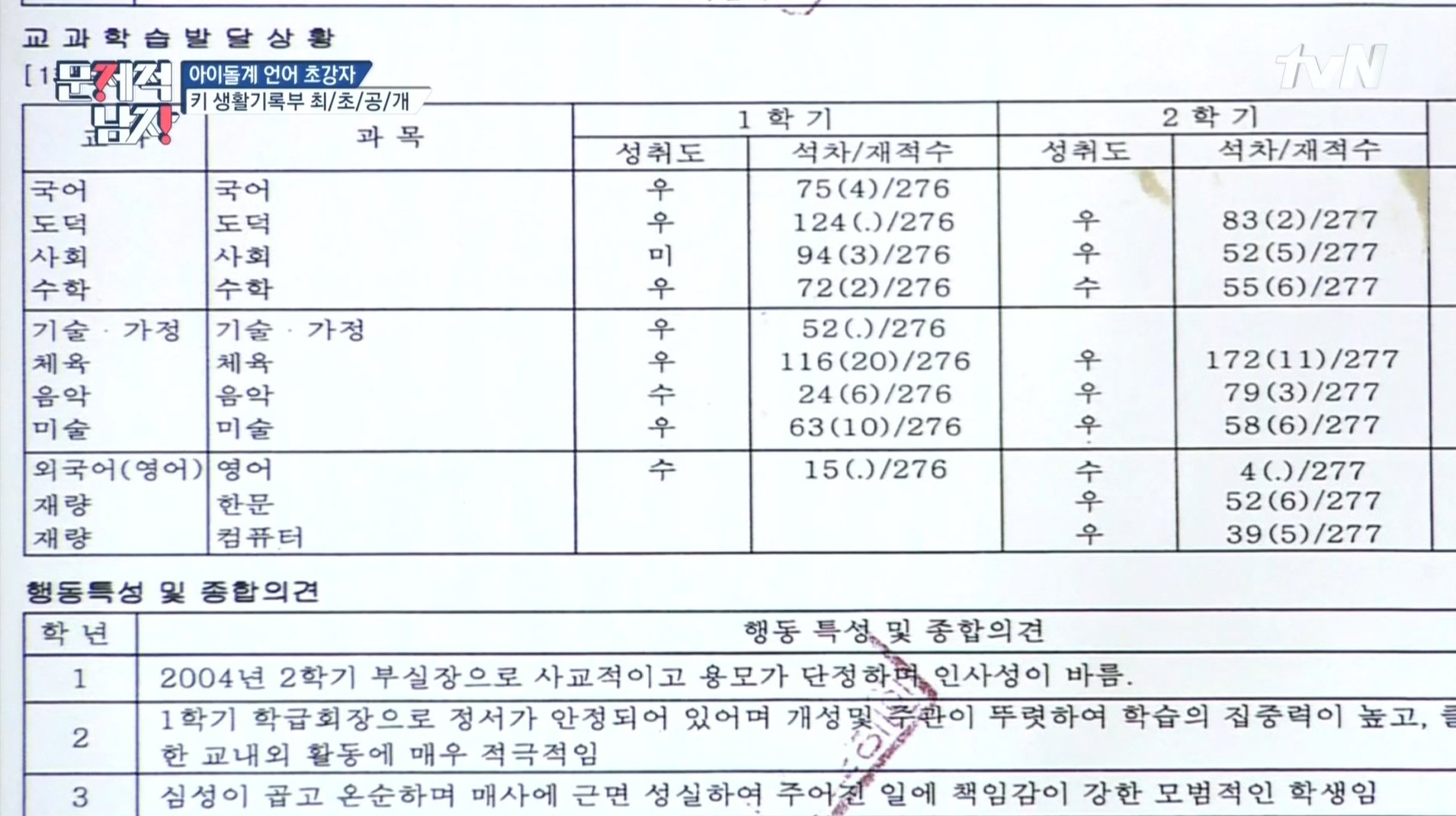 타아이돌그룹 멤버와 비교되는 수호 성적표