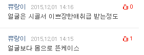 아니 이 정도로 댓글 달 정도면 뭐 .. 몸매랑 얼굴이 종결 아닌가?